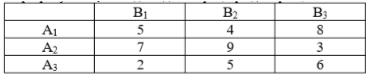 Для матриці гри визначити математичну модель задачі лінійного програмування, яка відповідає матриці гри для гравця A: