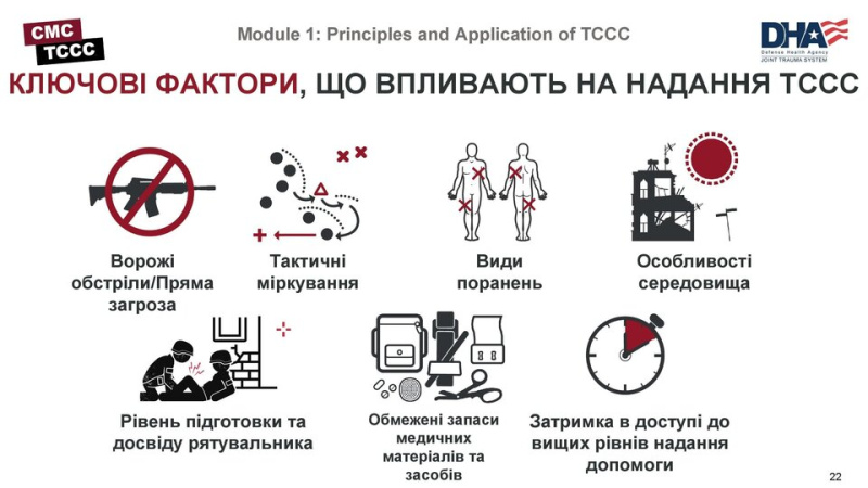 Базовий план дій під час фази Допомоги в польових умовах (TFC) згідно з Настановами TCCC включає: