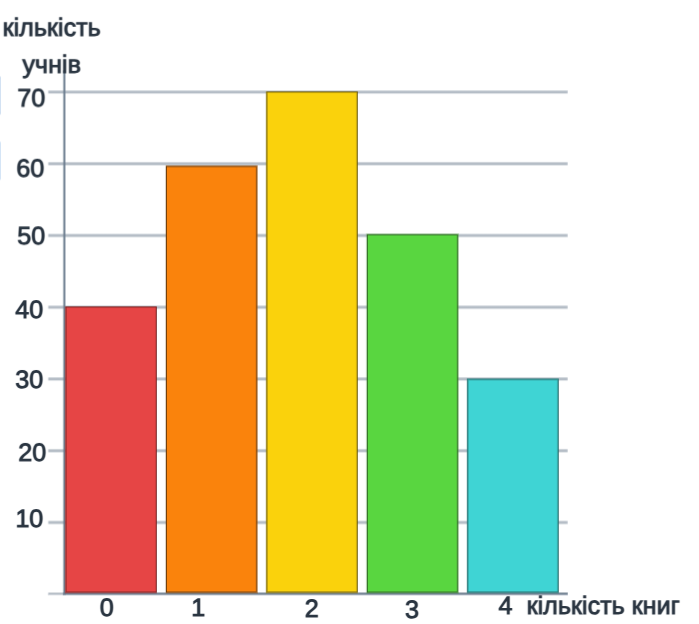 На діаграмі відображено результати опитування учнів щодо кількості прочитаний книг за останній місяць.