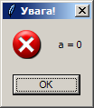 messagebox.showerror("Увага", "а = 0")
