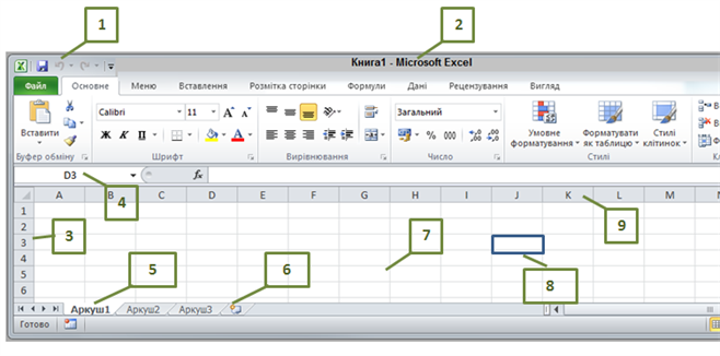 Додавання нового аркуша позначено цифрою