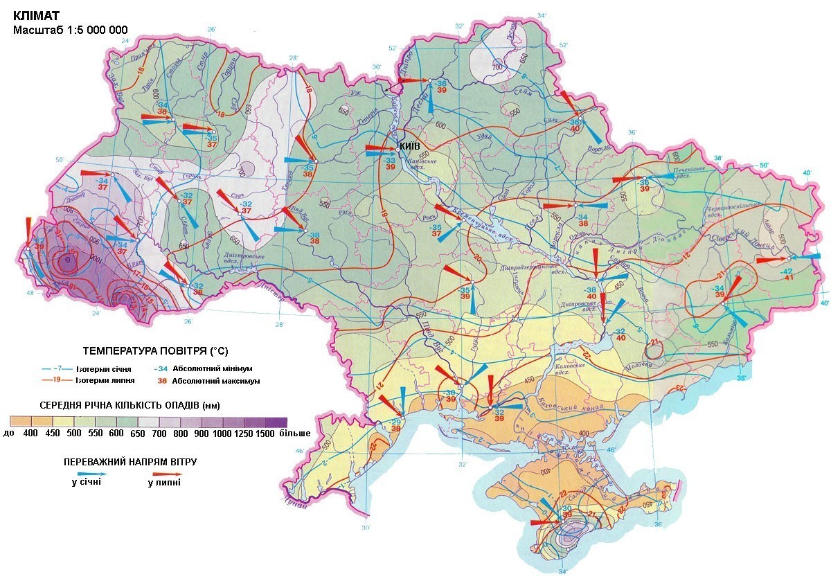 Причиною зростання континентальності клімату України з північного заходу на південний схід є