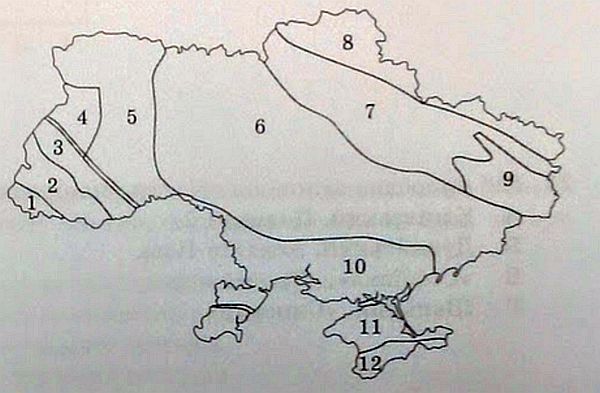 З якими тектонічними структурами, що позначені цифрами на картосхемі України, пов'язані басейни кам'яного і бурого вугілля?