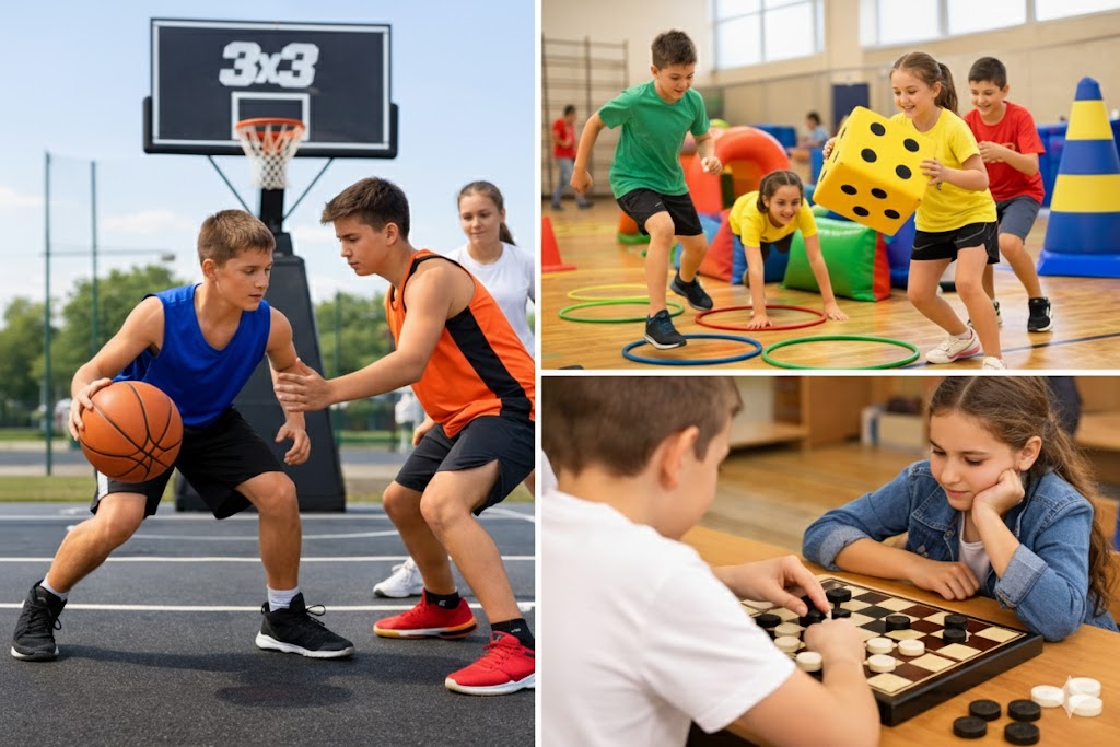 Приклад запитання: 1.Скільки гравців одночасно перебуває на майданчику у складі однієї команди в баскетболі 3*3?