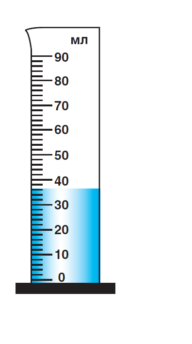 Визнач ціну поділки шкали мензурки: