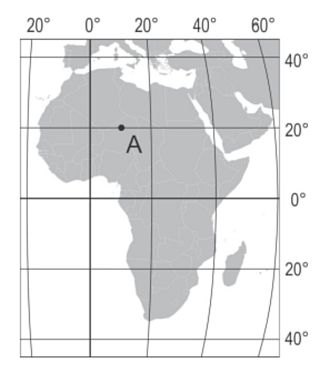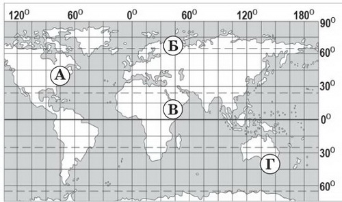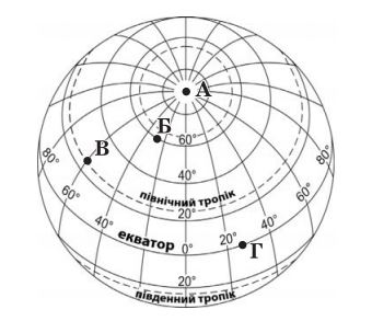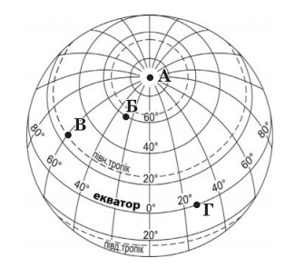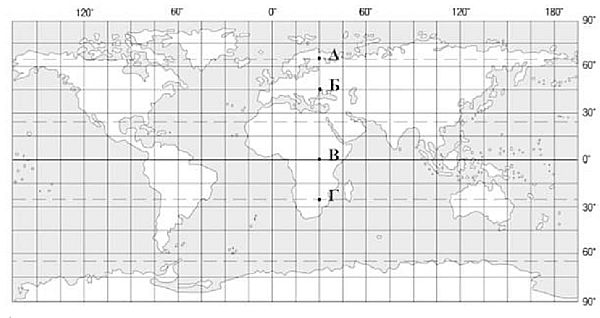 У якій із позначених на карті точок сонце перебуває в зеніті двічі на рік?