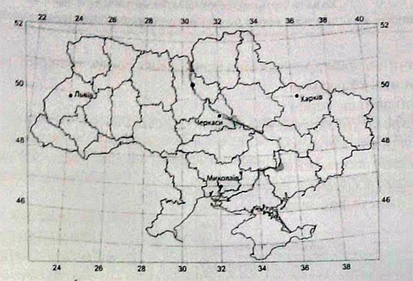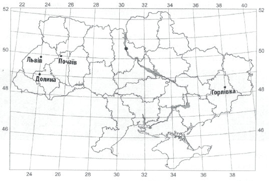 Скориставшись картою України, визначте місцевий час у Львові, якщо в Дніпропетровську за місцевим часом у цей момент 16 год 24 хв.