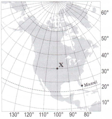Обчисліть, на скільки хвилин місцевий час у точці Х відстає порівняно з місцевим часом на початковому (нульовому) меридіані.