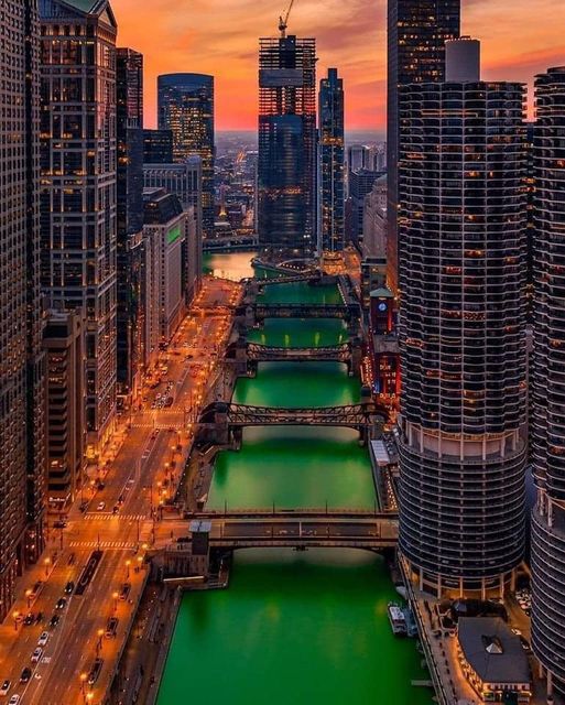 It's the Chicago-river in Chicago, USA. Why is it green?