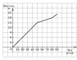 Висота дерева змінювалася залежно від віку так, як показано на графіку. Скільки років було дереву, коли його висота була 15 м?