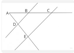 Вкажіть пару рівних відрізків на малюнку, якщо АВ=ВС, BD ІІ CЕ.