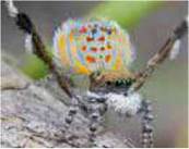 На ілюстрації зображений один із найкрасивіших видів павуків - павук-павич леопардовий, відкритий у 2014 р. в Австралії. Які структури визначають відмінність ознак самця від самки у павука?