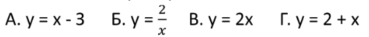 Укажіть функцію що задає пряму пропорційність.