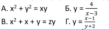 Серед переліку рівнянь оберіть рівняння з двома змінними: