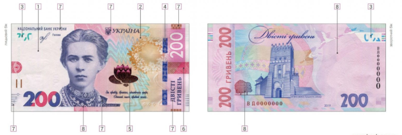 Скільки елементів захисту від підроблення мають гривневі банкноти?