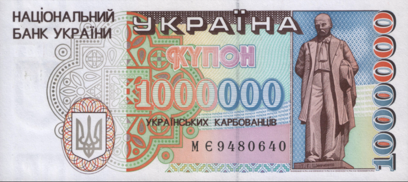 В якому році була введена в обіг купюра в 1 мільйон карбованців?