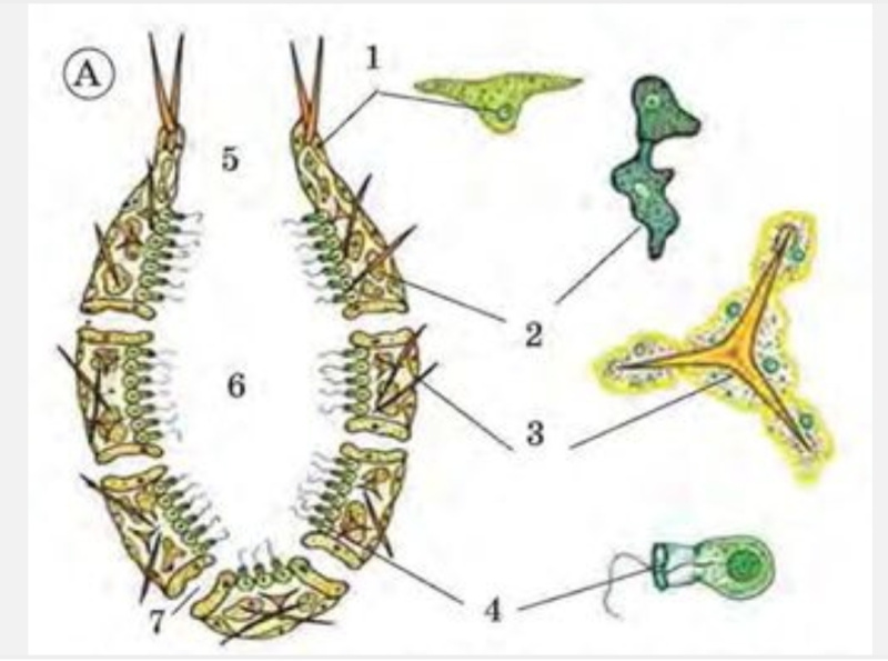 Частина тіла губки зображена цифрою 6