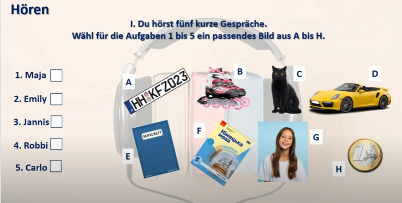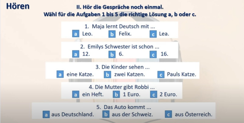 Aufgabe 2 du hörst jetzt die Gespräche noch einmal dann sollst du für die Sätze 1-5 die richtige Variante A B oder C