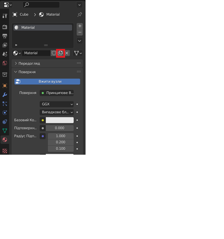 Створити новий матеріал і призначити його об’єкту, вибравши кнопку
