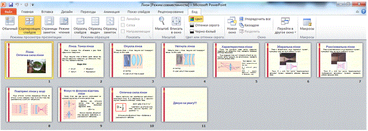 Оберіть режим роботи, що відповідає таким особливостям: Можна створювати нові слайди та змінювати порядок розміщення слайдів