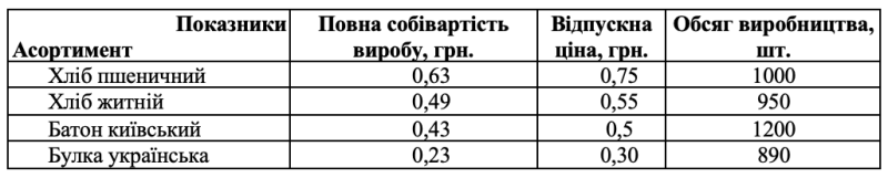 Розрахувати показники рентабельності по пекарні за даними таблиці, якщо середньорічна вартість основних виробничих фондів становить 140 тис. грн. і нормованих оборотних засобів — 20,5 тис. грн.