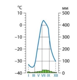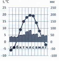 Який тип клімату характеризують відображені на кліматодіаграмі показники?