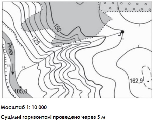 Визначте атмосферний тиск (у мм рт. ст.) у точці витоку струмка, якщо біля урізу води в Річці він становить 755 мм рт. ст.