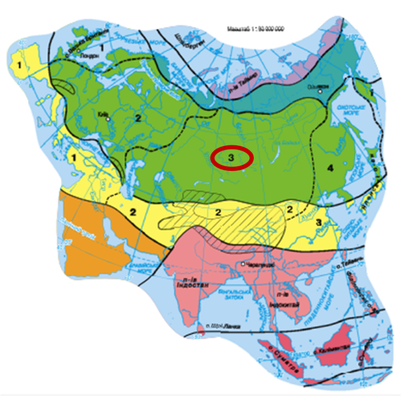 Укажіть кліматичний пояс та область, виділені на карті?