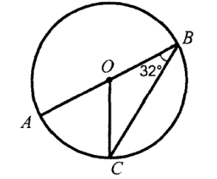 На рисунка ∠АВС=32°, точка О - центр кола. Знайдіть кут АОС.