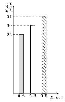 На малюнку зображено стовпчасту діаграму розподілу учнів у шостих класах школи. Визначте кількість учнів у 6–Б класі.