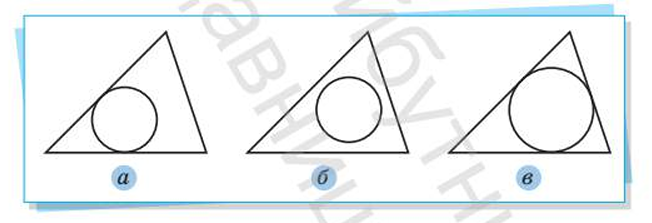 На якому рисунку зображено коло, вписане в трикутник?