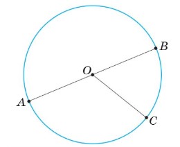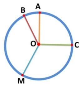 Розглянь зображення. Як можна назвати відрізки OA, OB, OC?