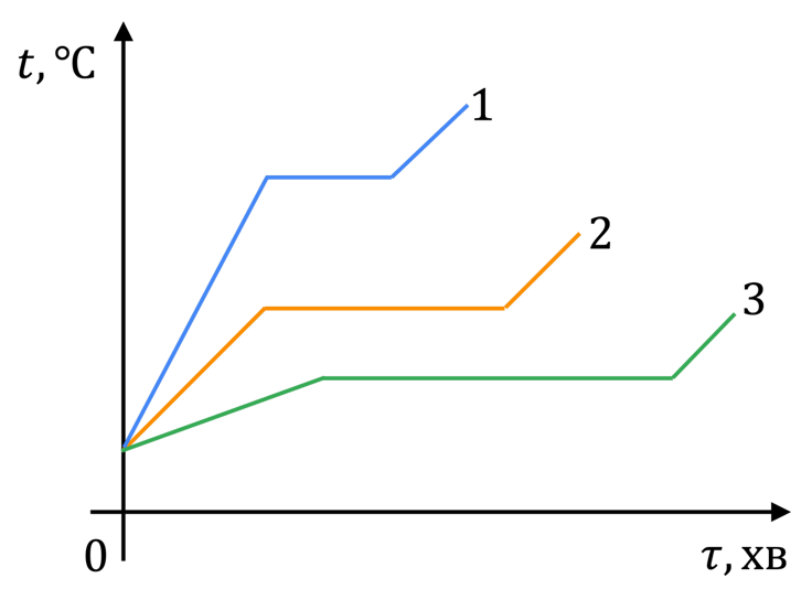 Виберіть графік, побудований для речовин, у якої температура плавлення найвища: