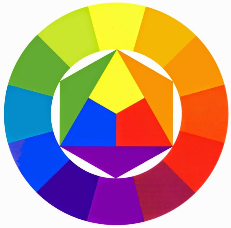 Кольоровий контраст - це протиставлення кольорів за кольоровим колом (жовтий-фіолетовий, червоний-зелений, оранжевий-синій).