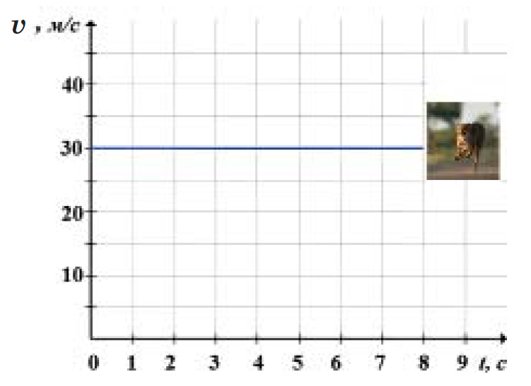 Використовуючи графік швидкості руху гепарда (див. рис.), визначте час його руху та шлях, пройдений ним за цей час.