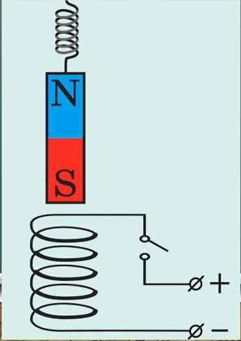 Над котушкою підвішено на пружині магніт. Як буде поводитися магніт, якщо коло замкнути?