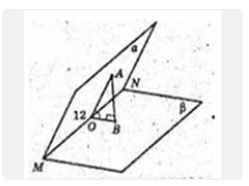 Дано двогранний кут, міра якого 60°. AO ⊥ MN, BO ⊥ MN, АВ ⊥ β, АО = 12 см. Знайдіть АВ.