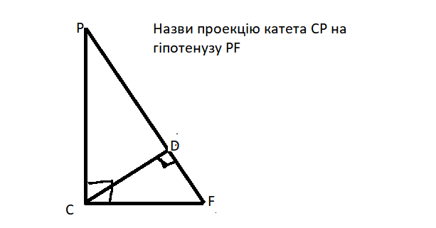 Назвати проекцію катета СР на гіпотенузу