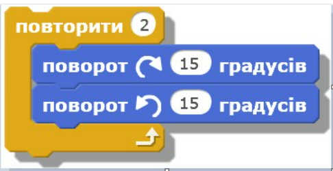 На скільки градусів буде виконано поворот у результаті виконання такого циклу?