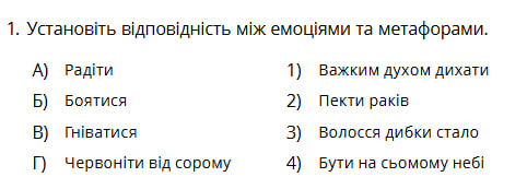ЗОШИТ Установіть відповідність між емоціями та метафорами.