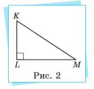 Прямокутний трикутник KLM (рис.2), у якого ∠L=90°, KL=5см, LM=12см, обертають навколо катета LM. Укажіть радіус R і висоту H конуса, утвореного в результаті цього обертання.