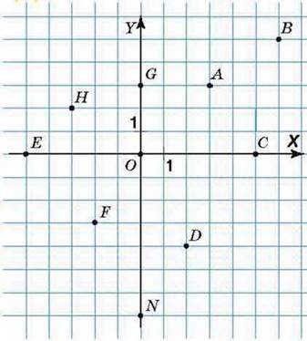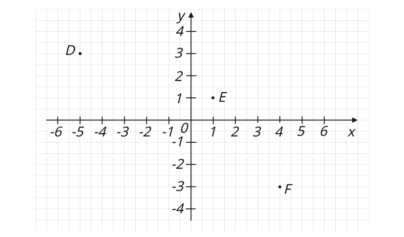 Вкажіть координати точок D, E і F, що зображені на координатній площині