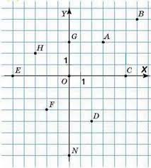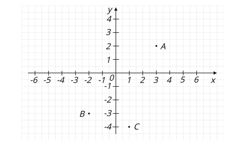 Вкажіть координати точок A, B і C, що зображені на координатній площині