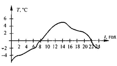 На рисунку зображено графік руху температури ( Т ⁰с ) від часу (t год). В якій годині температура повітря була 0⁰?