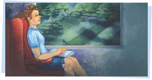 Чий це опис «Дівчинка 15 років у трамваї, який їде нагору. Дівчинка тримала на колінах згорнутий рулон паперу, виглядаючи у вікно. Ота мала в білій футболці й обрізаних по коліна джинсах не виглядала на грабіжницю трамваїв»?