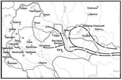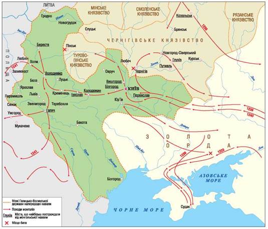 Коли відбувся похід монголів на Русь, позначений стрілками на карті