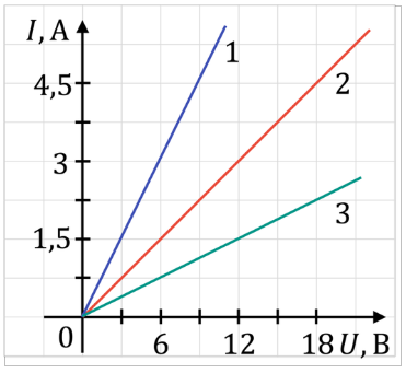 Який із графіків залежності сили струму від напруги відповідає провіднику з найбільшим опором? ГР 2