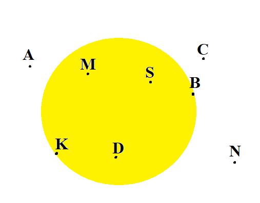 Які з точок позначених на рисунку НЕ належать кругу?