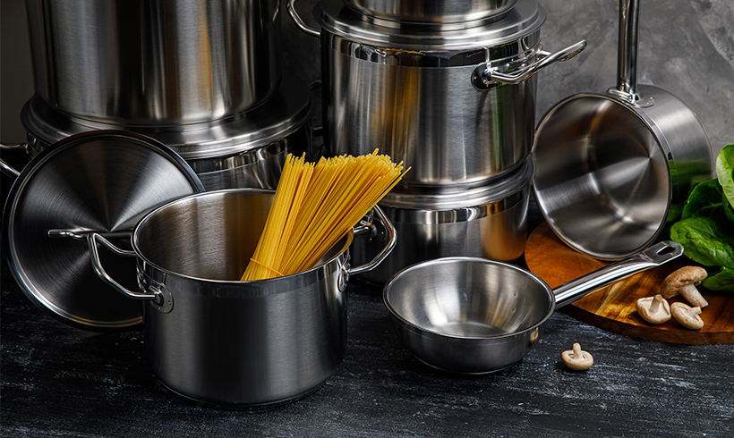 4. Який матеріал найчастіше використовують для виготовлення каструль у професійних кухнях?