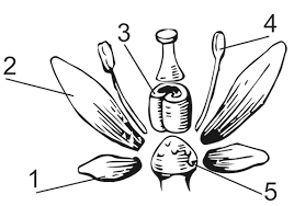 Вкажіть, яка цифра вказує на чашелистик: